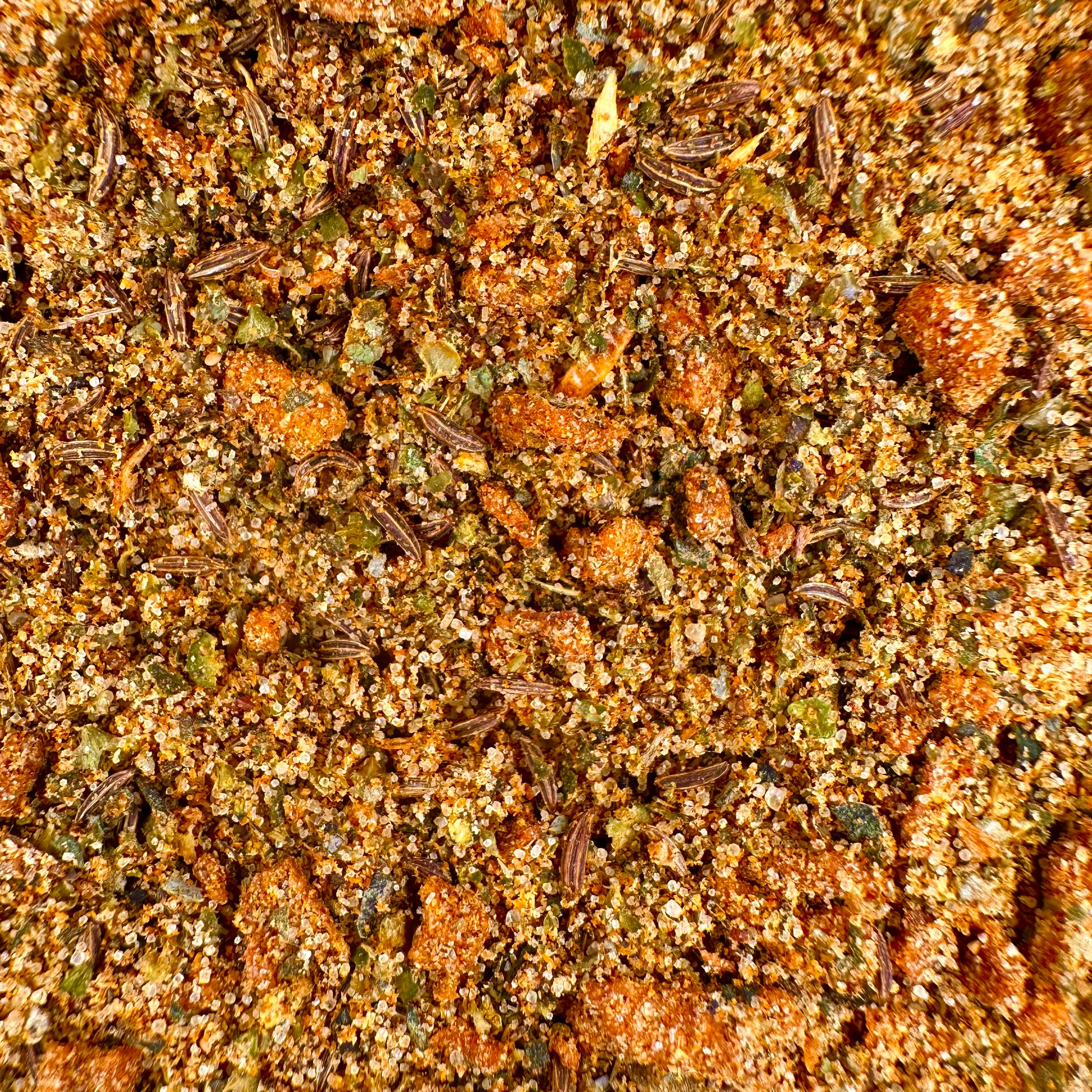 ZUTATEN: Meersalz, Kümmel, Paprika, Traubenzucker, Pfeffer, Koriander, Majoran, Bohnenkraut, Chili, Muskat