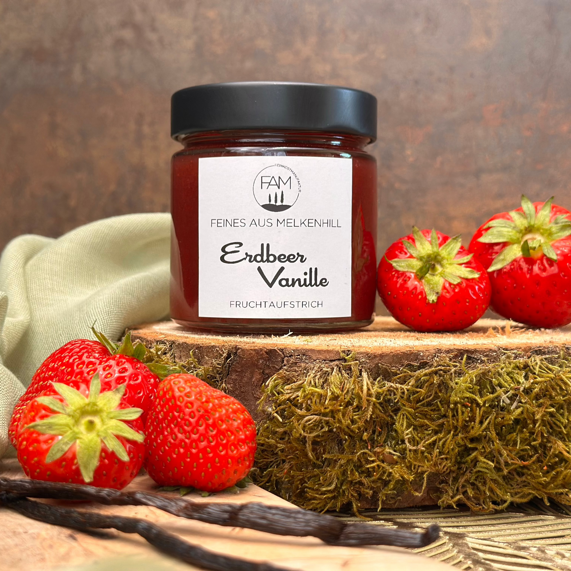 ZUTATEN: Erdbeeren, Zucker, (Verhältnis 3 Teile Obst und 1 Teil Zucker), Geliermittel Pektin, Bourbon Vanille, Zitronensäure.