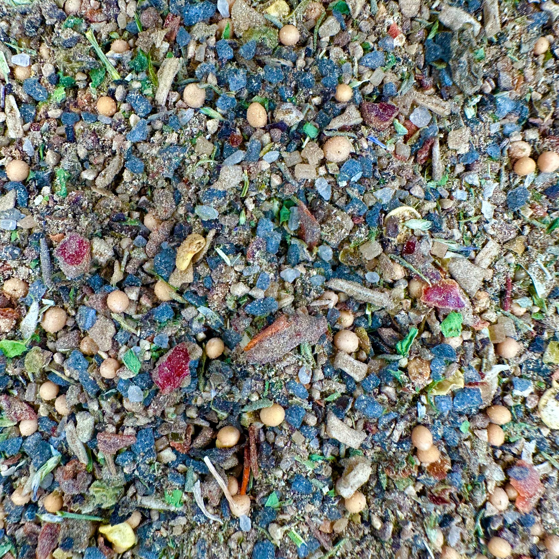 ZUTATEN: schwarzes Meersalz, schwarzer Pfeffer, Senfkörner, Rohrzucker, Jalapenos, Zwiebel, Paprikaflocken, Tomatenflocken, Orangenschalen, Thymian, Schabzigerklee, Zimt, Selleriesaat