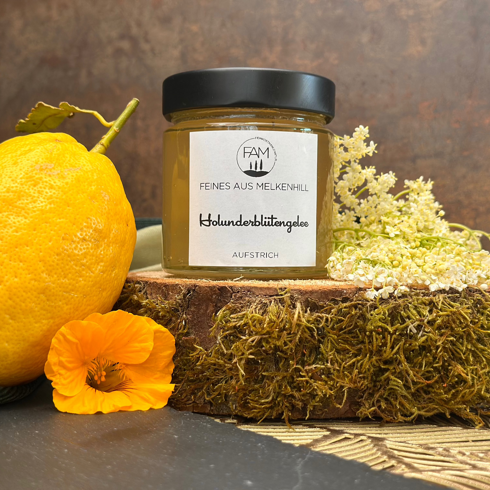 ZUTATEN: Holunderblüten, Wasser, Zucker (Verhältnis 3:1), Geliermittel Pektin, Zitronensäure