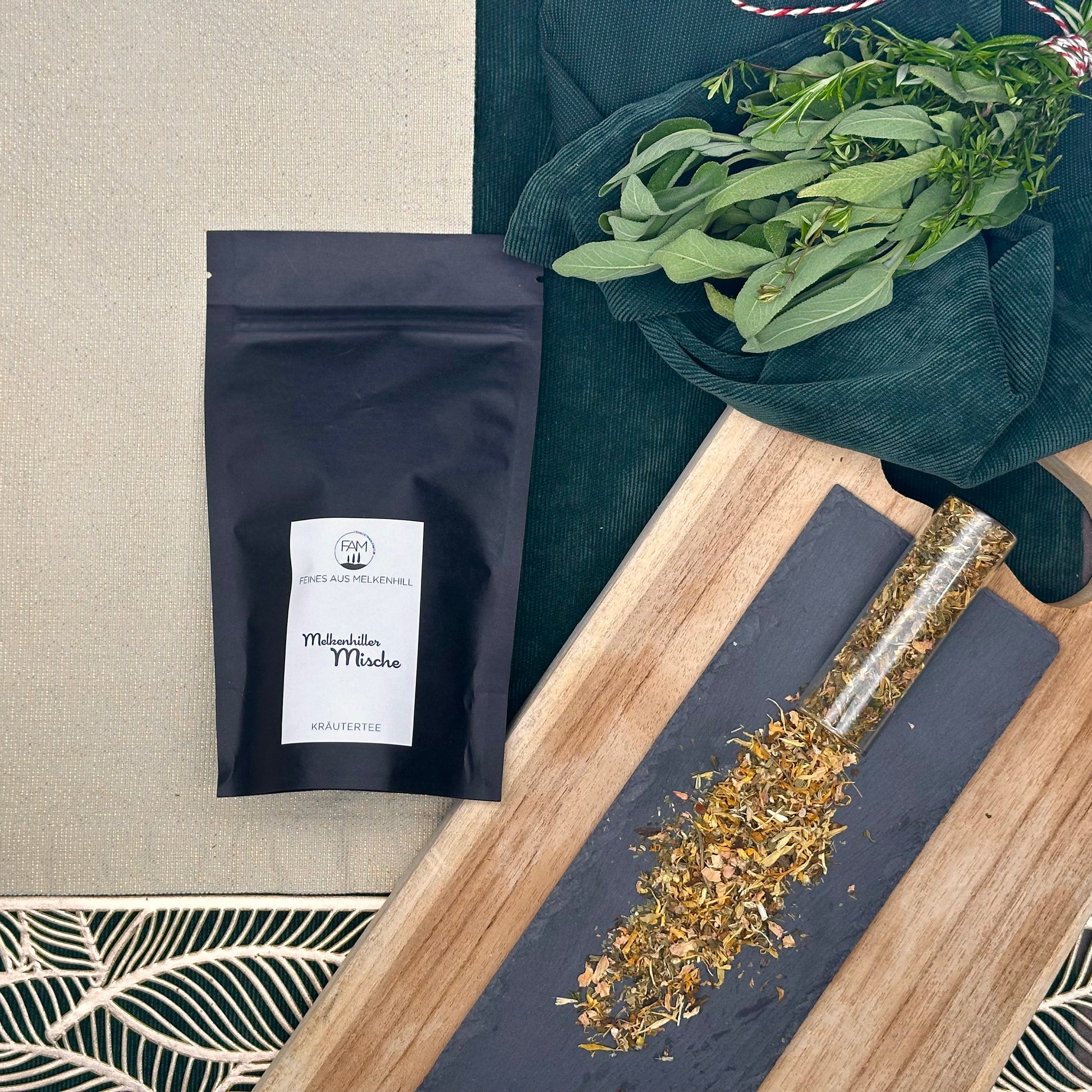 ZUTATEN: Spitzwegerich, Malvenblätter, Eibischblätter, Ringelblumenblüten, Kakaoschalen, Pfefferminze, Eibischwurzeln, Sonnenblumenblüten, Königskerzenblüten, Katzenpfötchen, Fenchel, Pfingstrose