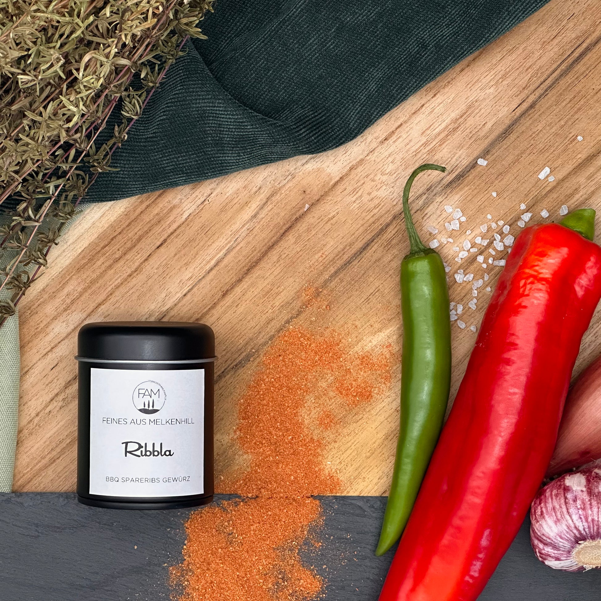 ZUTATEN: Meersalz, Chili, Paprika edelsüß, Zwiebel, Knoblauch, Paprikaflocken, Zucker.
